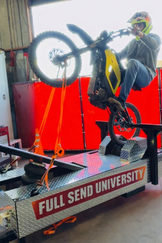 At Full Send University, we help riders safely and confidently learn to wheelie using a professional wheelie machine built for real skill development.